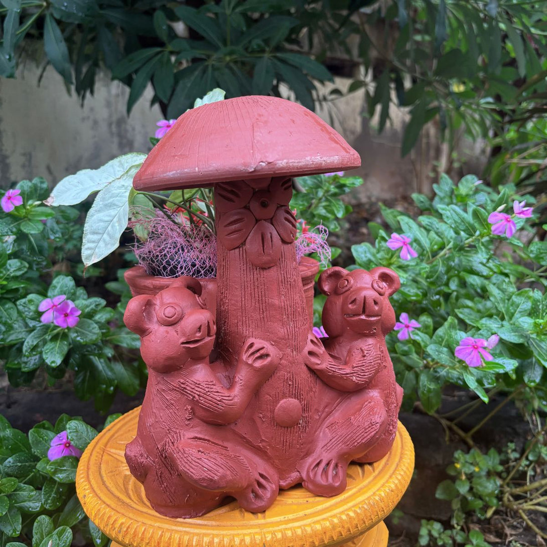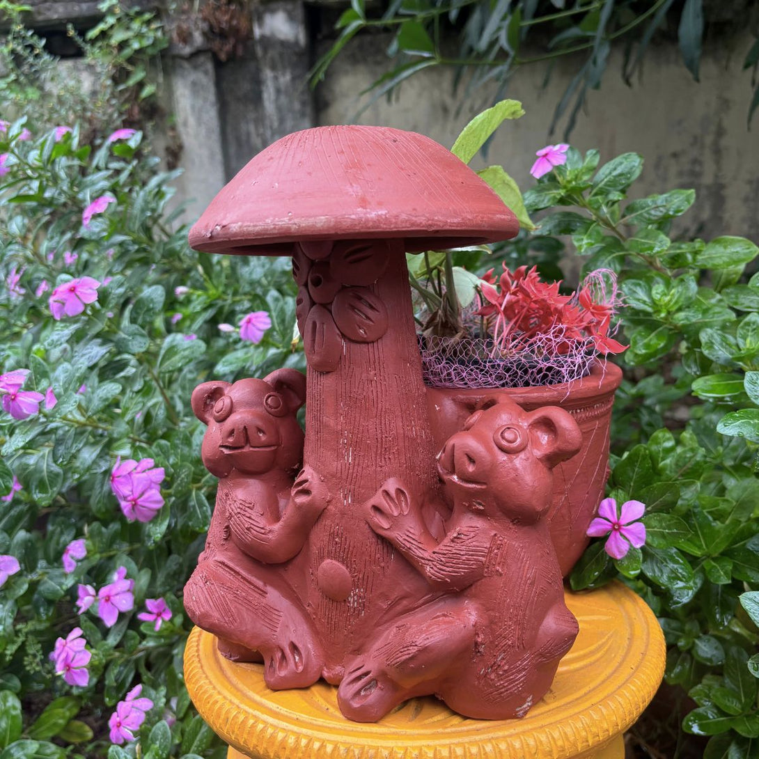 Terracotta Mushroom Planter with Pig & Pig Design Rustic Indoor & Outdoor Décor