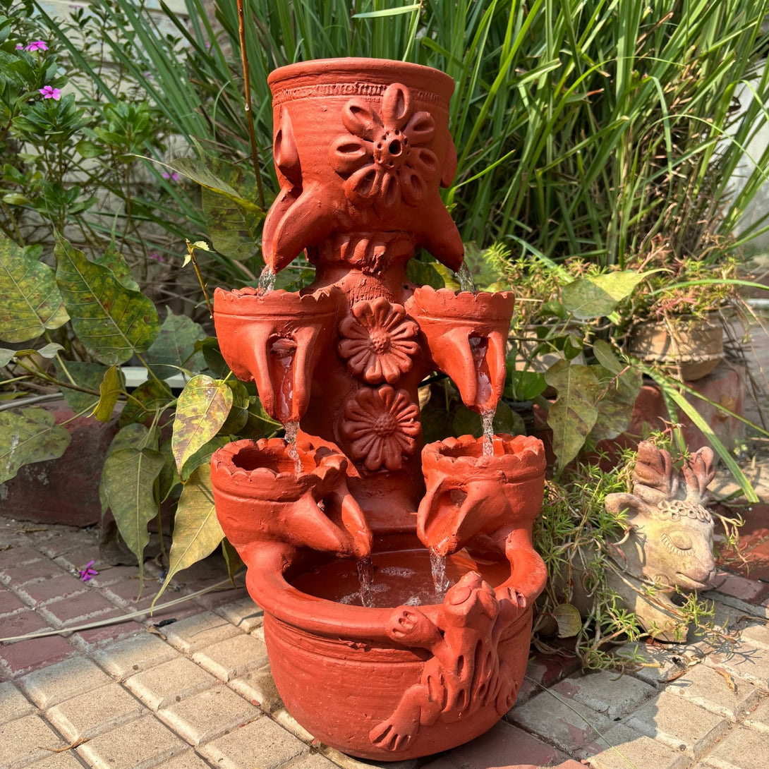 Elevate your outdoor space with our Handmade Terracotta Fountain, meticulously crafted by artisans from Pokhran. Perfect for garden and balcony decor, this elegant fountain features a classic design that enhances any setting with its soothing water flow and timeless charm. Made from durable terracotta, it adds a touch of rustic beauty while creating a serene atmosphere.