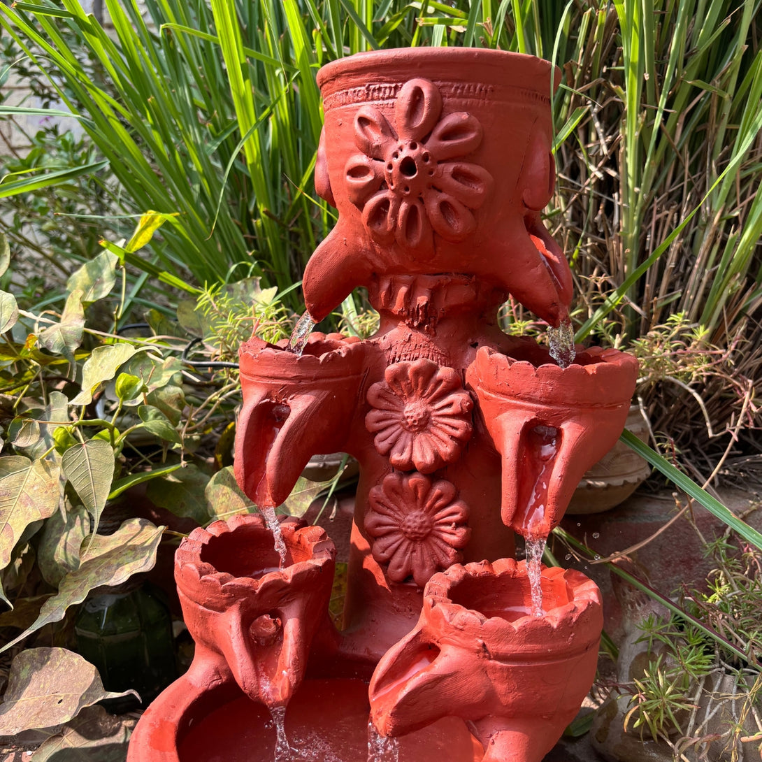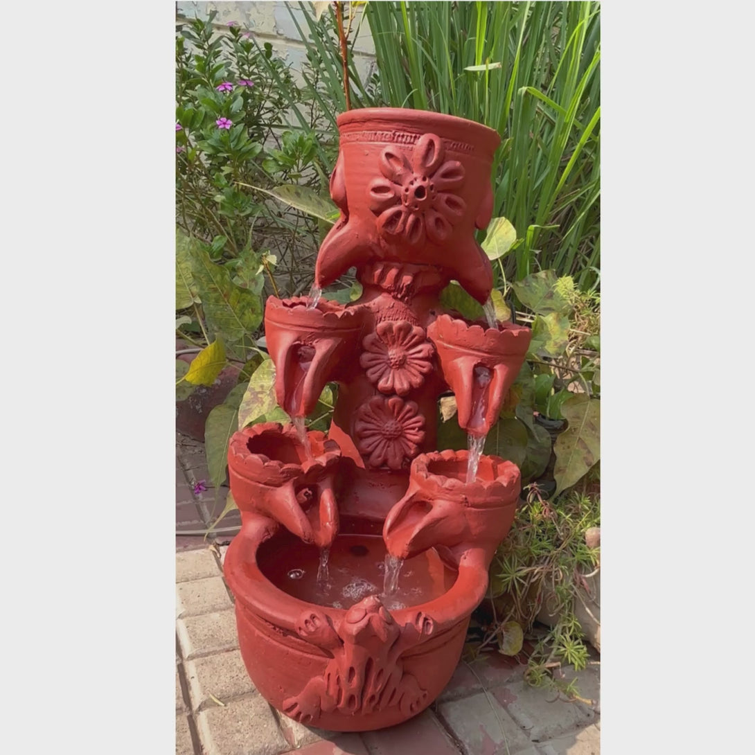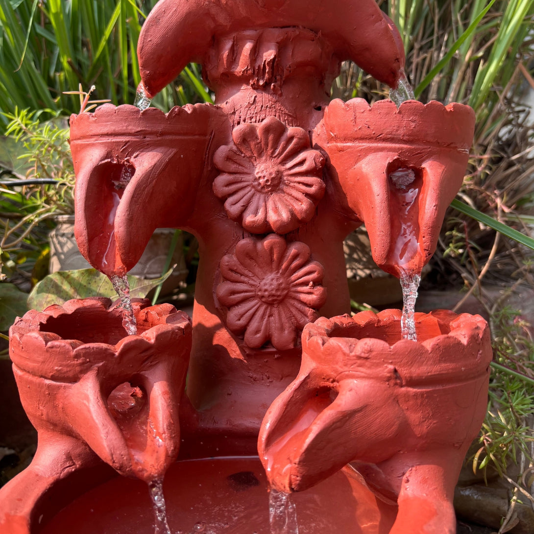 Floral Terracotta Fountain For Outdoor and Indoor