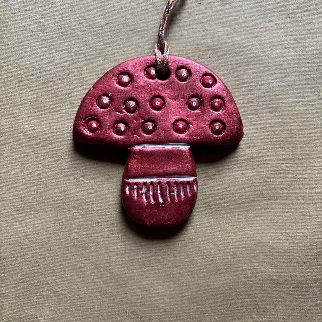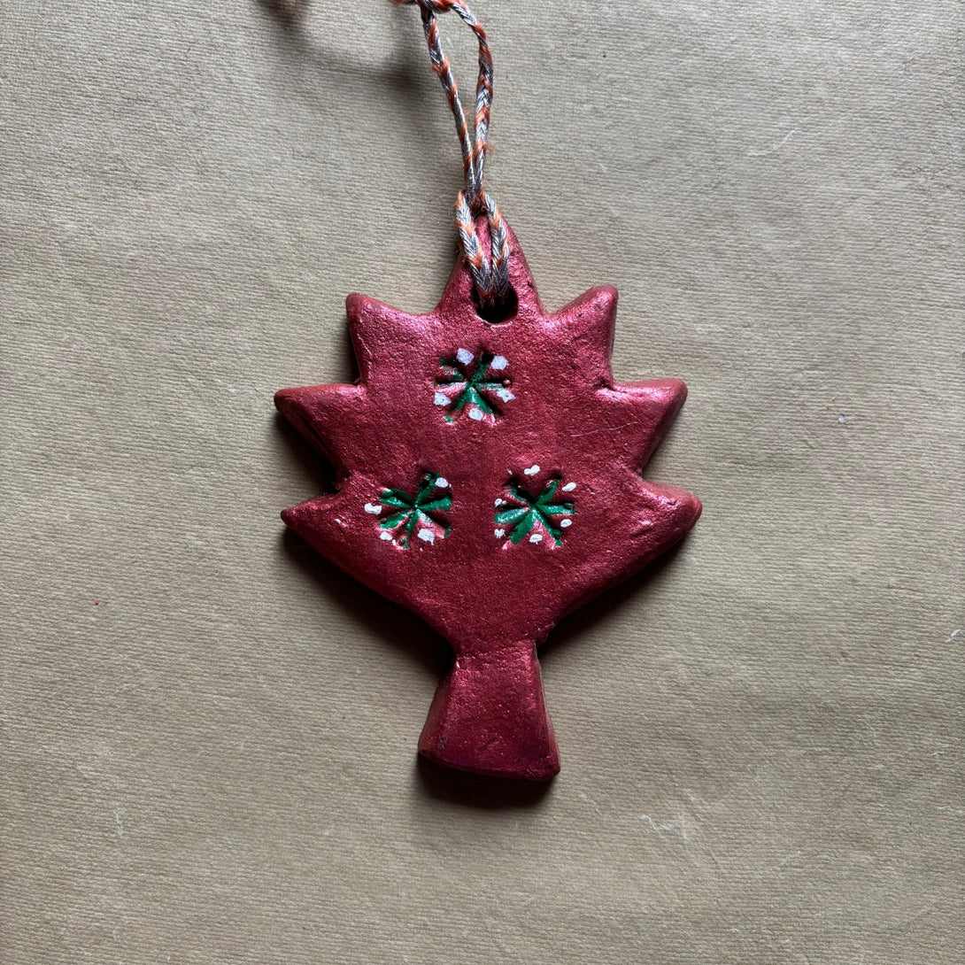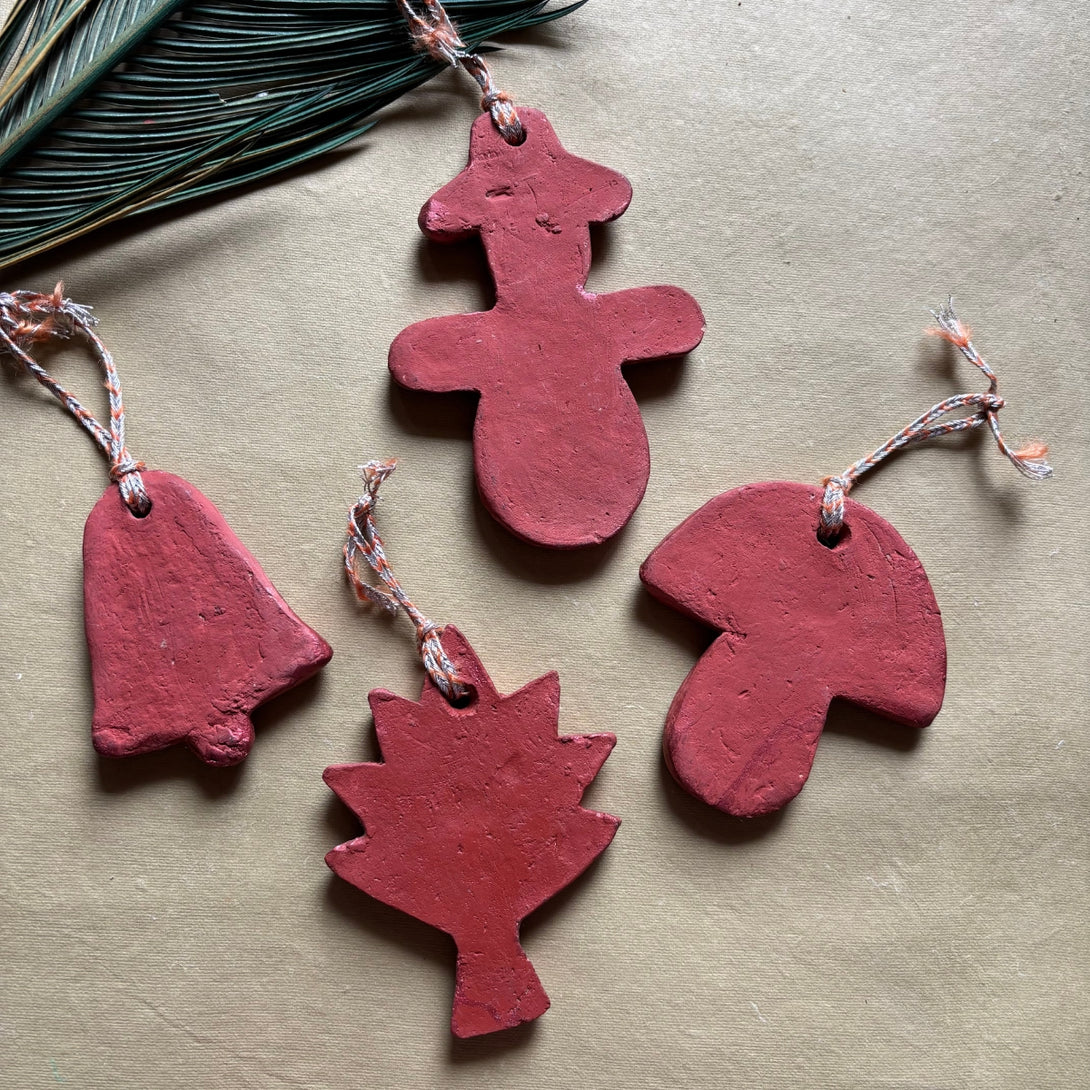 Handcrafted Terracotta Christmas Ornaments – Set of 4 | Glitter Red Festive Décor
