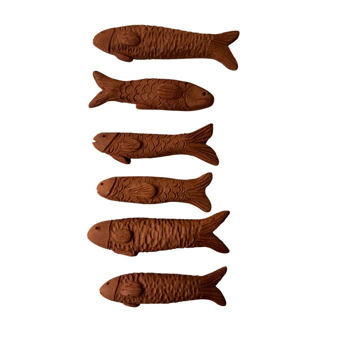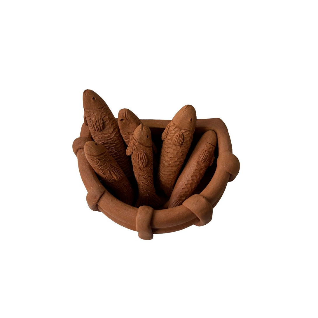 Bring a touch of coastal charm and Goan artistry to your kitchen with this Handcrafted Terracotta Fish Basket Fridge Magnet , lovingly made by local Goan potters. This miniature basket holds six assorted fish, each carefully shaped and detailed by hand celebrating the region’s seaside heritage and timeless pottery craft.