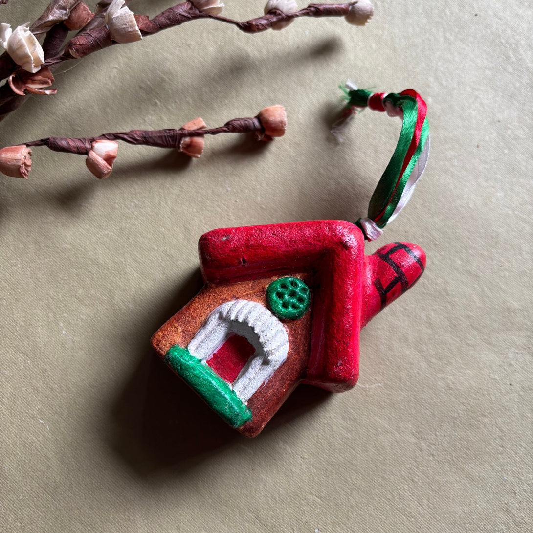 Bring a cozy handmade charm to your holiday décor with this Terracotta Hut Christmas Ornament a perfect blend of tradition, creativity, and festive spirit. Each ornament is handcrafted from natural clay, featuring a sweet hut design with fine rustic details.