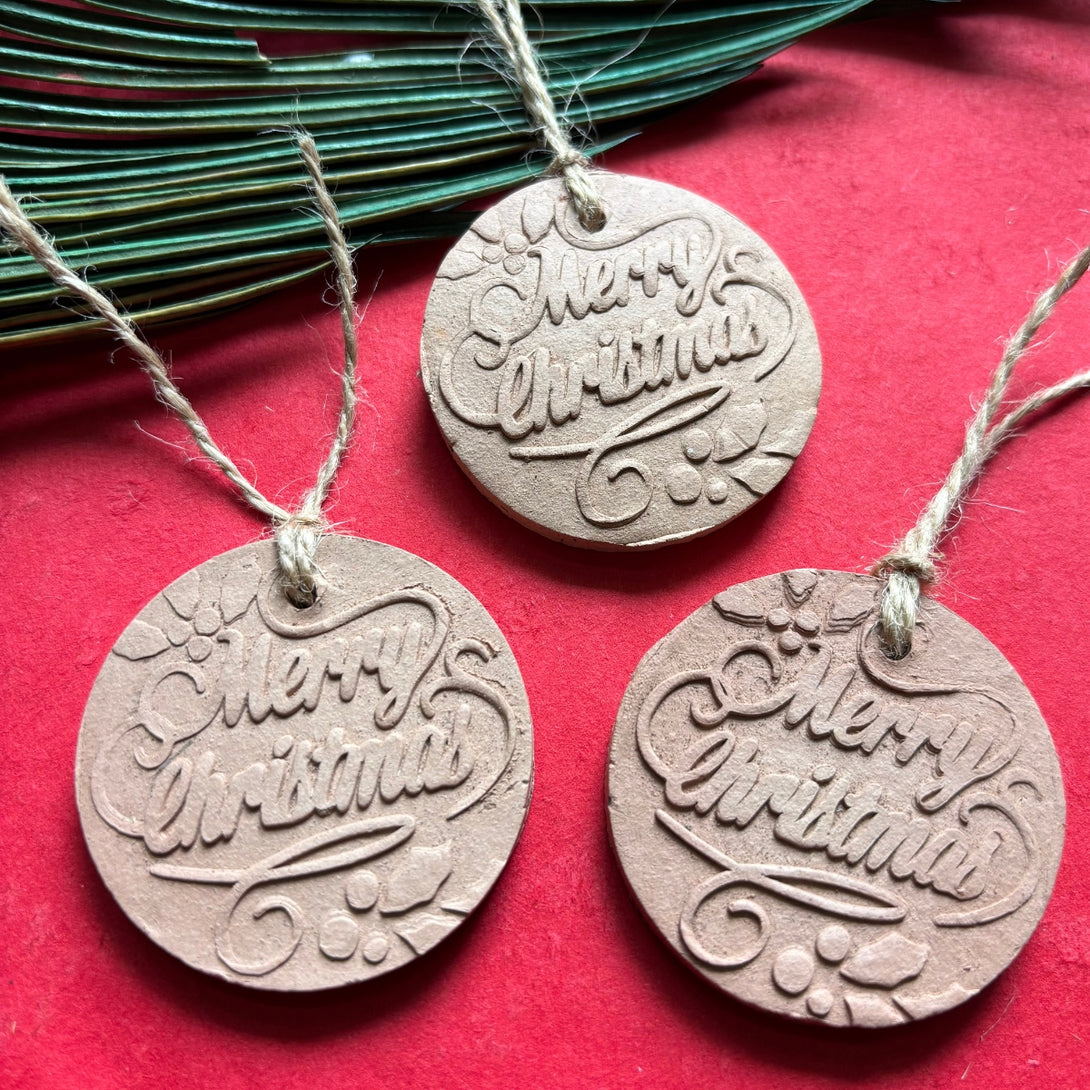 Handcrafted Terracotta Round Merry Christmas Ornaments – Set of 3