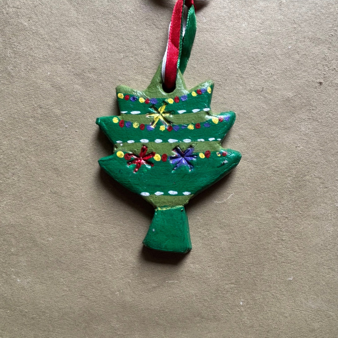 Handcrafted Terracotta Xmas Tree Ornaments - Set of 3