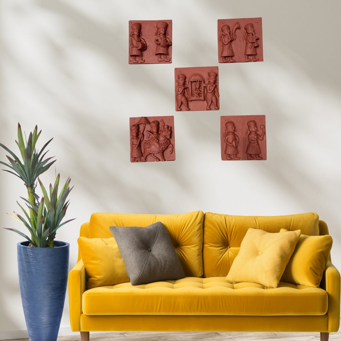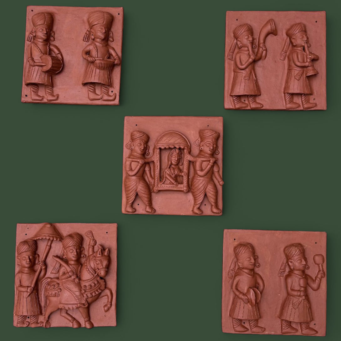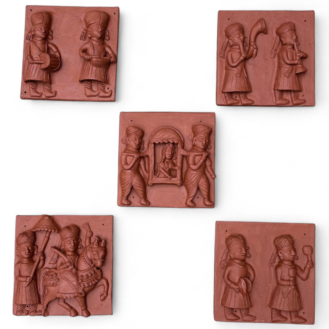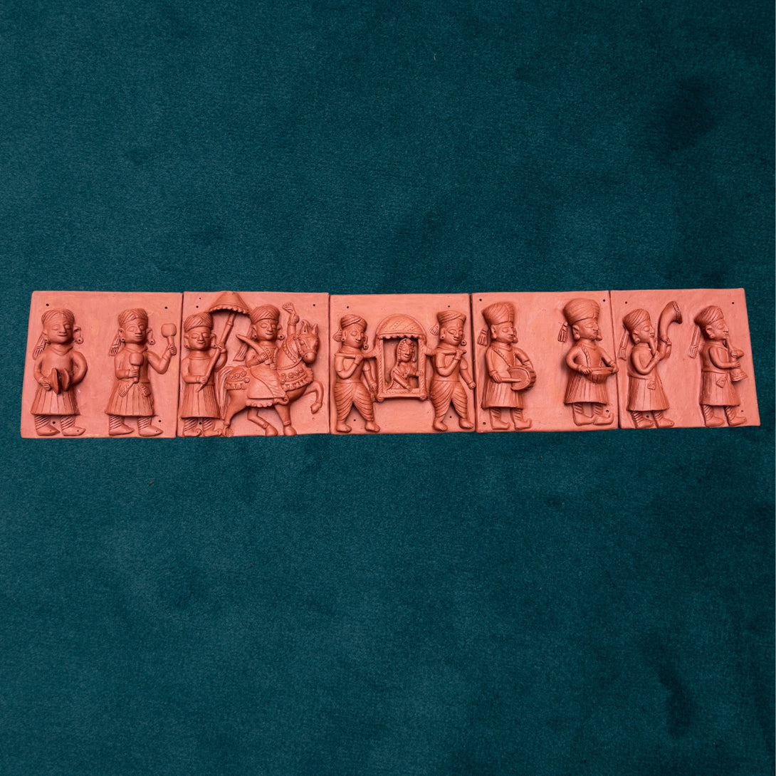Indian Baraat Ritual Terracotta Mural Set of 5