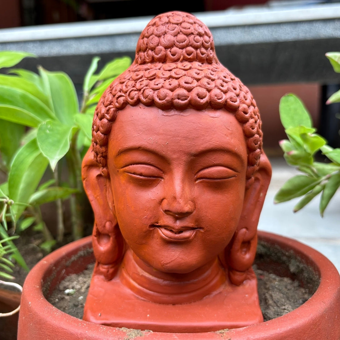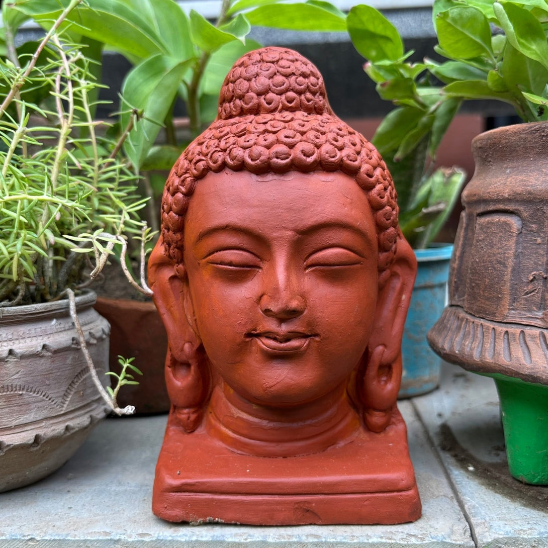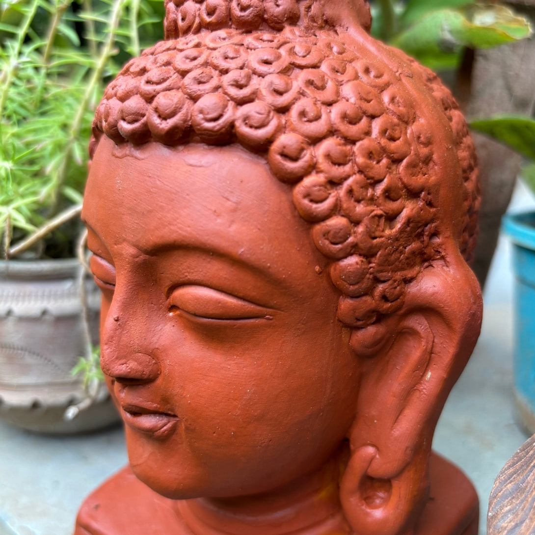 Add a touch of peace and serenity to your surroundings with this beautifully crafted Terracotta Buddha Face. Designed to inspire calm and mindfulness, this elegant piece makes a perfect addition to your balcony, garden, or study room. Whether nestled among plants or displayed on a quiet shelf, its earthy tones and tranquil expression evoke a sense of Zen and spiritual balance. Handmade from natural terracotta, each piece carries its own unique texture and charm—making it not just a decorative accent, but a symbol of inner stillness and harmony.