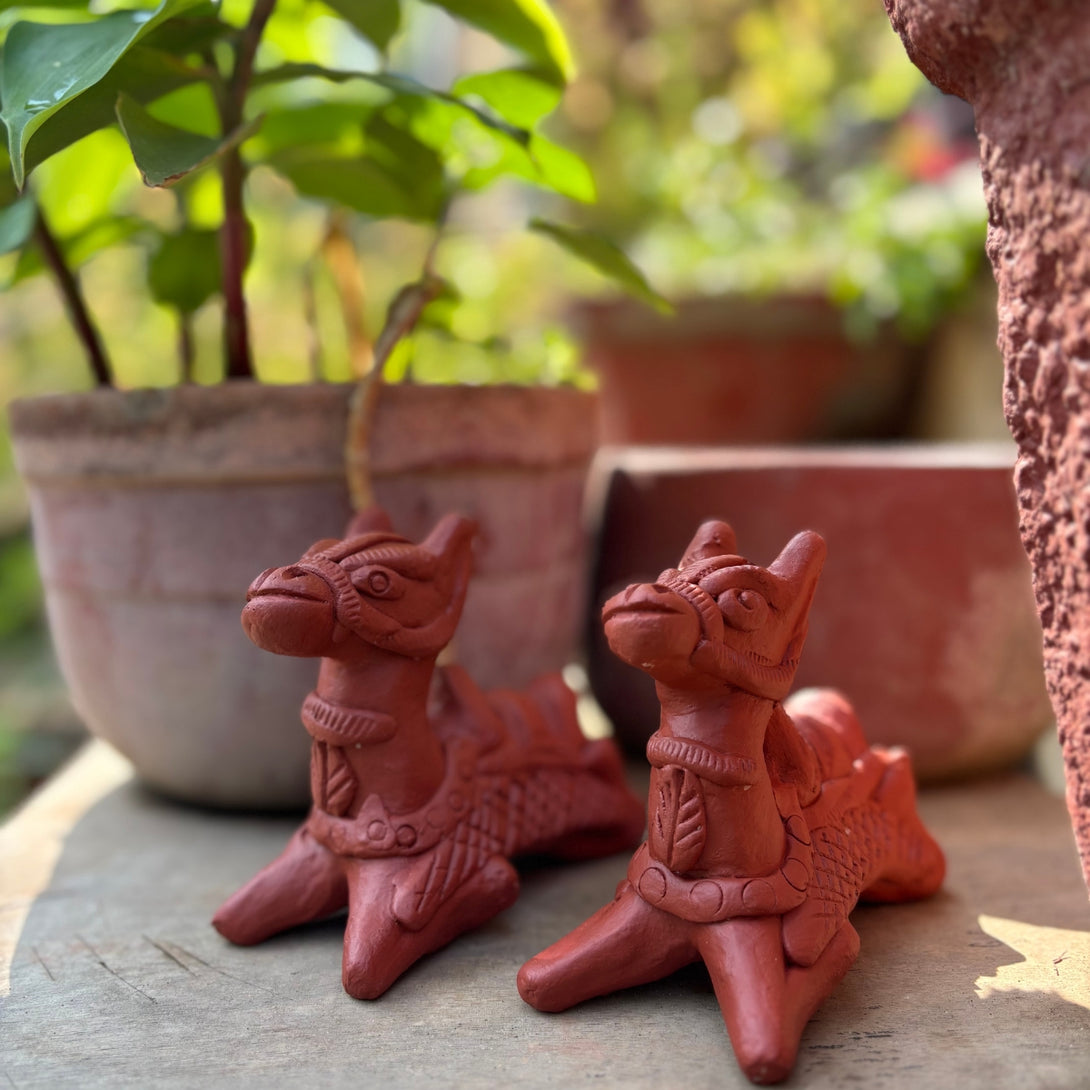 Terracotta Camel Duo – Traditional Rustic Figurines for Home & Garden Decor