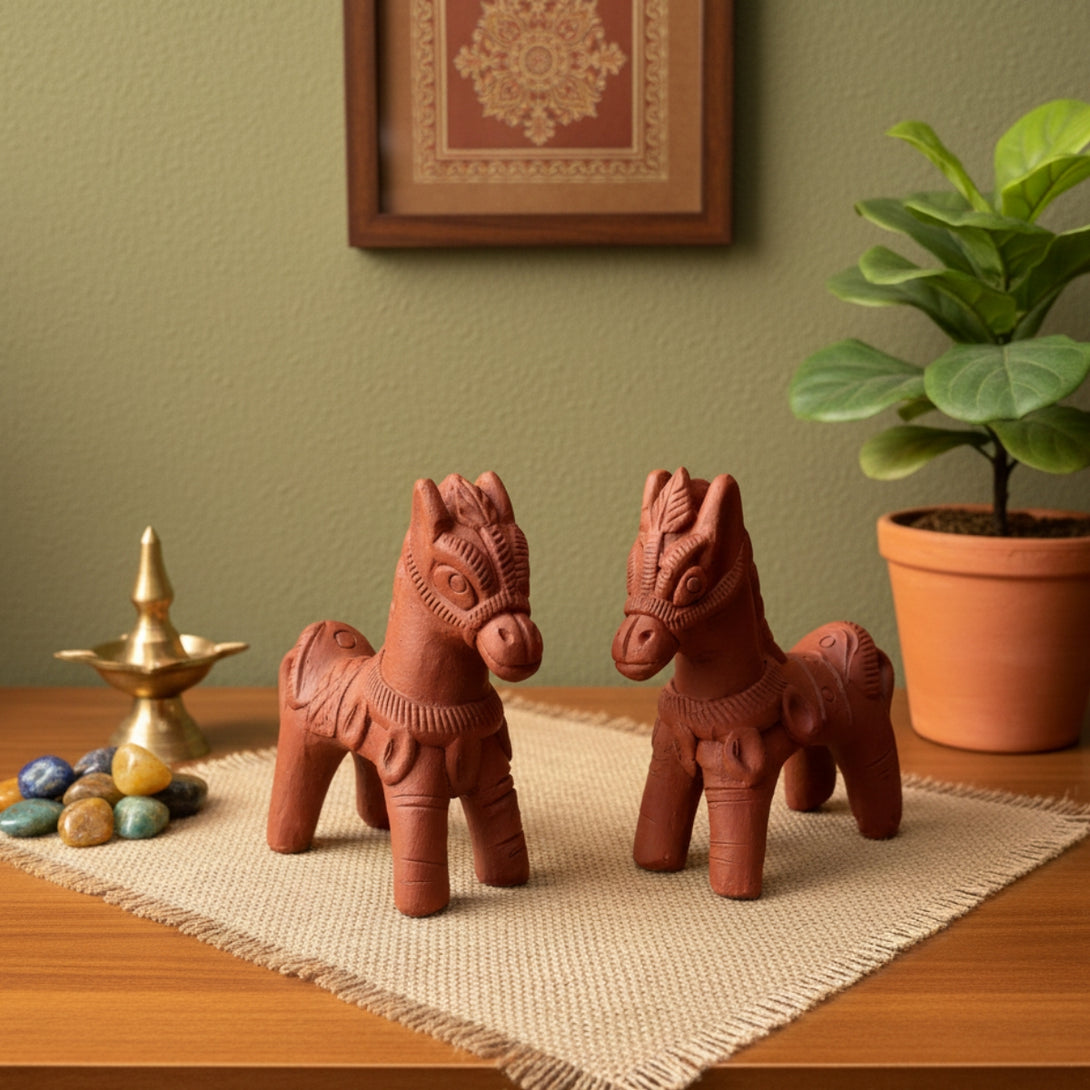Celebrate the beauty of traditional Indian craft with this Handmade Terracotta Horse Figurine, sculpted by skilled artisans. The horse is an ancient symbol of strength, grace and protection brings a powerful yet calming presence to any space.