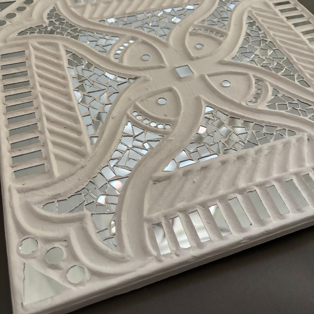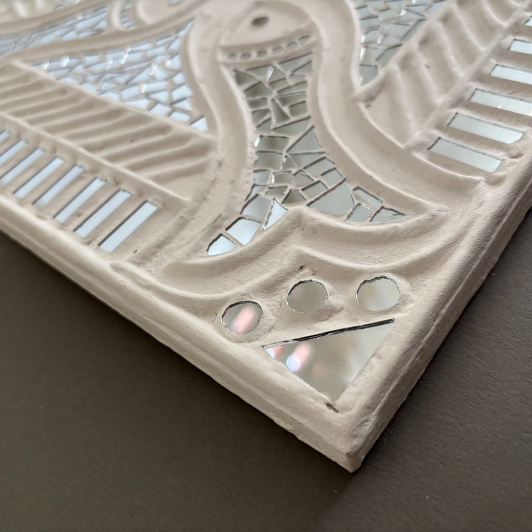 Material: Plywood base with traditional Lippan art & mirror inlay