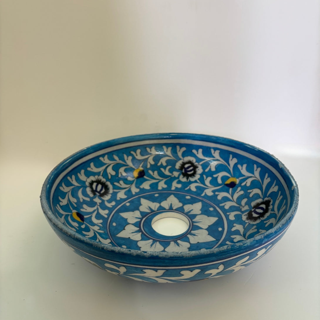 The Art of blue pottery came to Jaipur from Persia and Afghanistan via Mughal Courts. Creating the right blend by mixing quartz stone powder, powdered glass, Multani Mitti (Fuller’s Earth), borax, gum, and water is at the core of Jaipur Blue Pottery. The pottery is completely different from the regular ceramics which use the clay from the river bed, which results in its uniqueness and exclusivity. The name blue pottery comes from the eye-catching cobalt blue color dye which is used in adorning the products. Each and every piece of blue pottery ware is hand-painted hence unique.