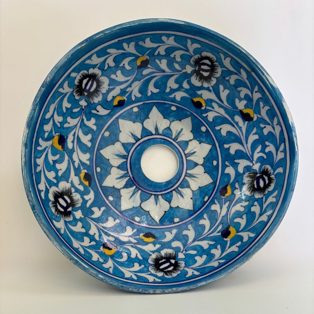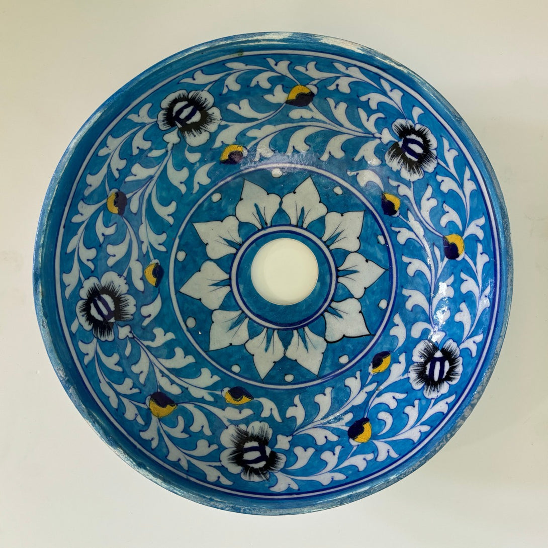 The Art of blue pottery came to Jaipur from Persia and Afghanistan via Mughal Courts. Creating the right blend by mixing quartz stone powder, powdered glass, Multani Mitti (Fuller’s Earth), borax, gum, and water is at the core of Jaipur Blue Pottery. The pottery is completely different from the regular ceramics which use the clay from the river bed, which results in its uniqueness and exclusivity. The name blue pottery comes from the eye-catching cobalt blue color dye which is used in adorning the products. Each and every piece of blue pottery ware is hand-painted hence unique.
