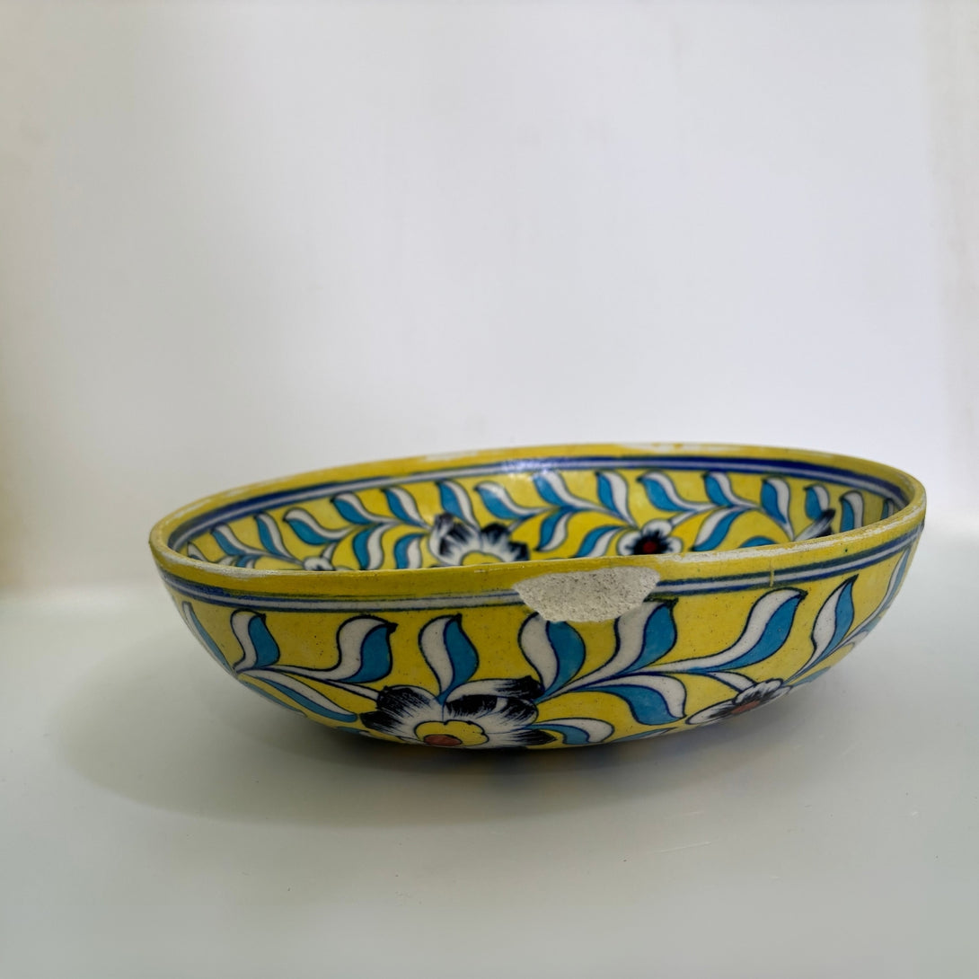 The Art of blue pottery came to Jaipur from Persia and Afghanistan via Mughal Courts. Creating the right blend by mixing quartz stone powder, powdered glass, Multani Mitti (Fuller’s Earth), borax, gum, and water is at the core of Jaipur Blue Pottery. The pottery is completely different from the regular ceramics which use the clay from the river bed, which results in its uniqueness and exclusivity. The name blue pottery comes from the eye-catching cobalt blue color dye which is used in adorning the products. Each and every piece of blue pottery ware is hand-painted hence unique.